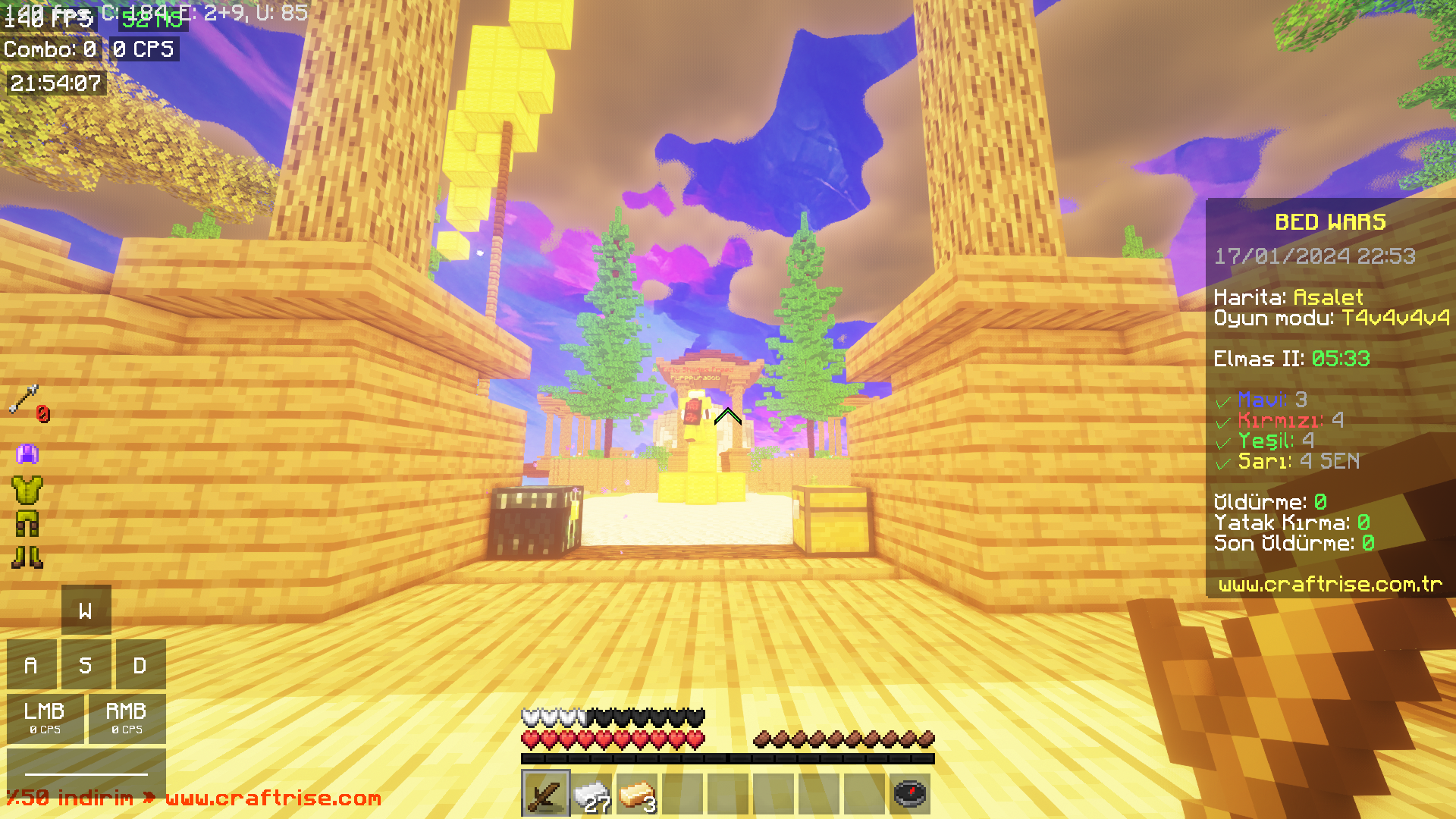 Kullandığınız shader packler çok fazla parlaklık içeriyordur. Bed wars için YouTube'da bir sürü shader pack videoları var onlara bakınız. Bu kullandığınız shader pack Survival için duruyor.