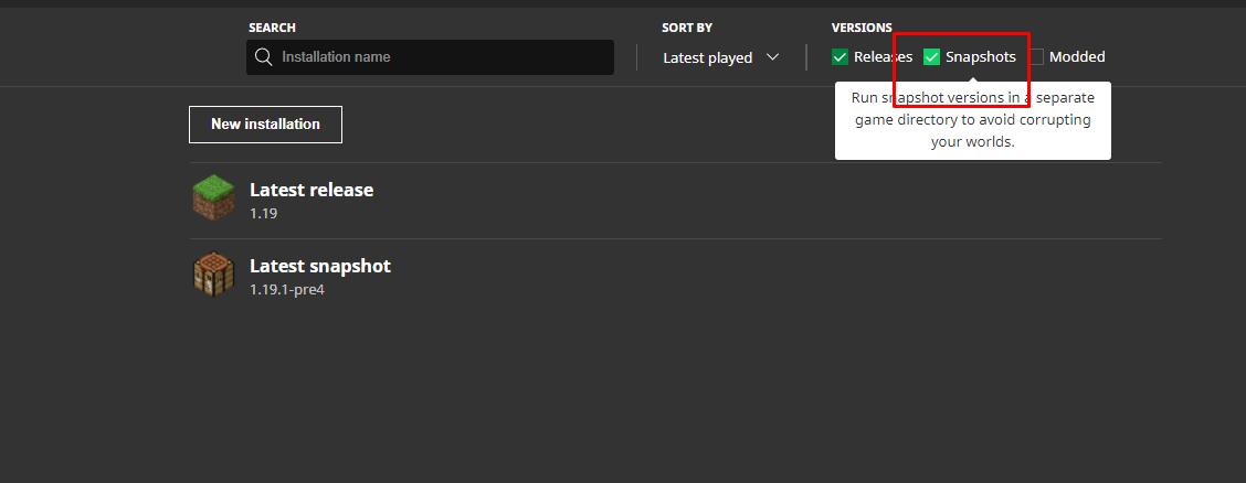 Merhaba. Minecraft snapshotlarını nasıl kapatabilirim? Sürüm bulmaya çalışırken zorlanıyorum.
