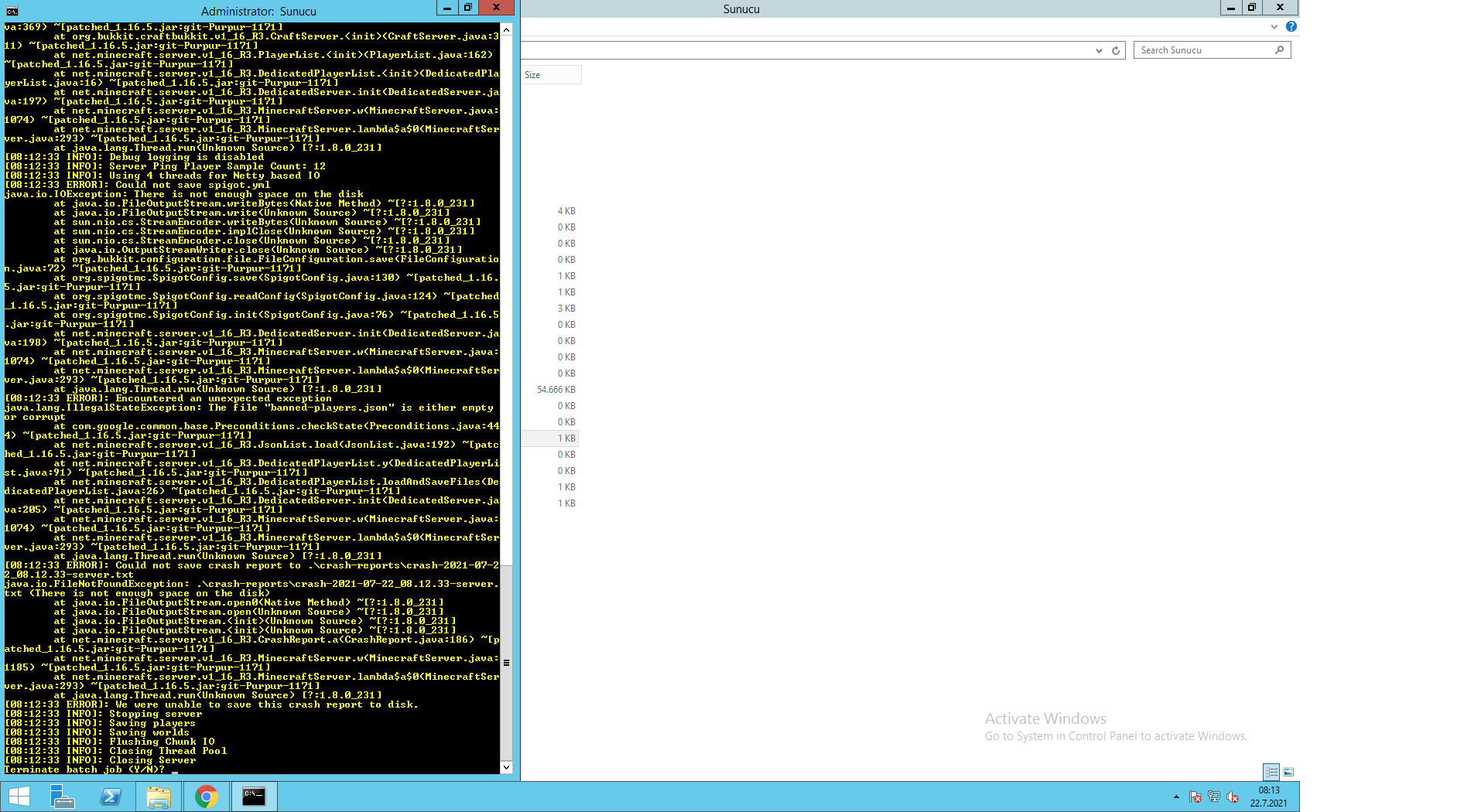 Ayrıca ordaki spamlanan yazıları çözdüm. Şuan da serveri açtığım zaman geri kapanıyor o sıkıntıyla uğraşıyorum
