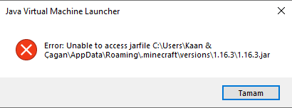 Minecraft'a girmeye çalışırken bu hatayı alıyorum. Normalde server kuranlar böyle bir hata alıyorlarmış. Biraz araştırdım ve bir sonuca varamadım. Hepsi aynı şekilde .bat dosyasının içindeki yazı ile server sürümünün adının aynı olmaması nedeniyle ortaya çıkıyormuş. Ama ben server açmaya çalışmıyorum sadece oyunu normal Launcher'den açmaya çalışıyorum. Oyunum crack değil orijinal bir Minecraft hesabım var. Yardımlarınıza muhtacım. Hata bu.