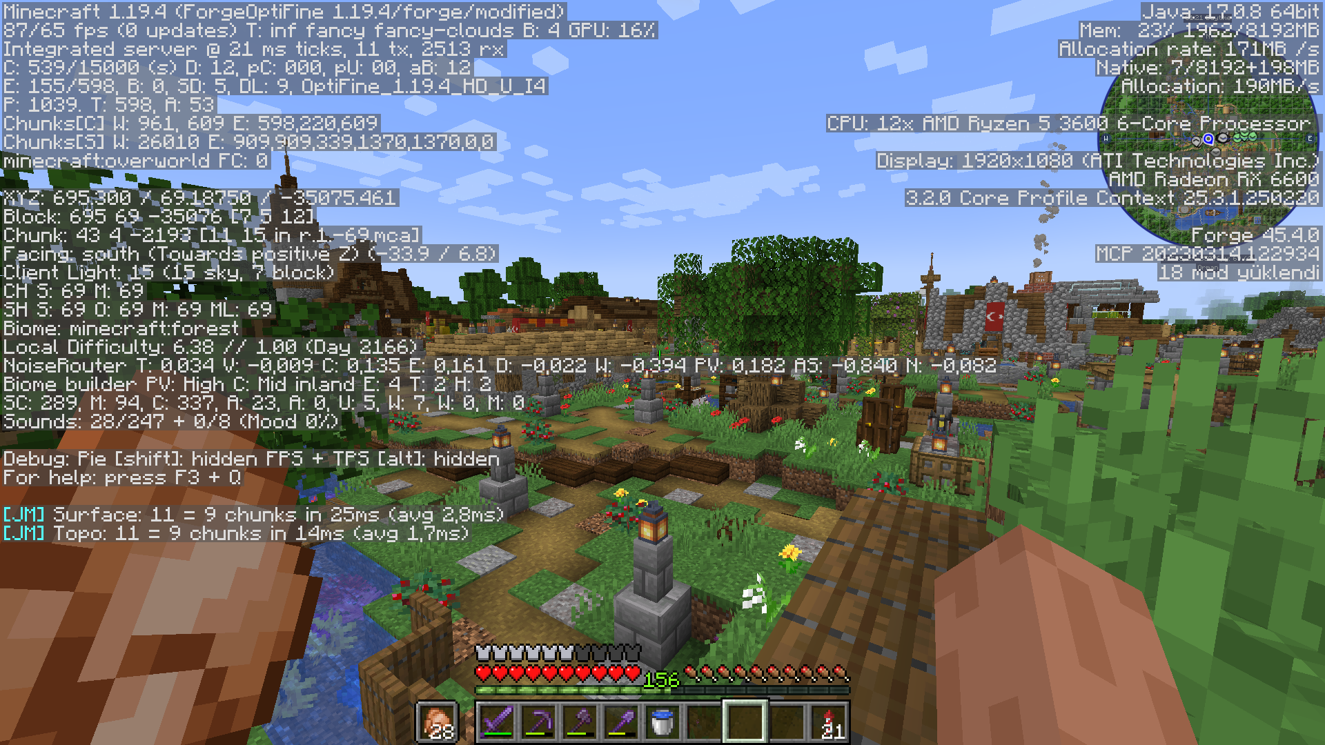 Yaklaşık 2 senelik Survival dünyam var, 2 GB boyutuna ulaştı. Aynı yerde eskiden 700 FPS alırken şimdi 70 80 FPS alıyorum, OptiFine yetmiyor artık.
