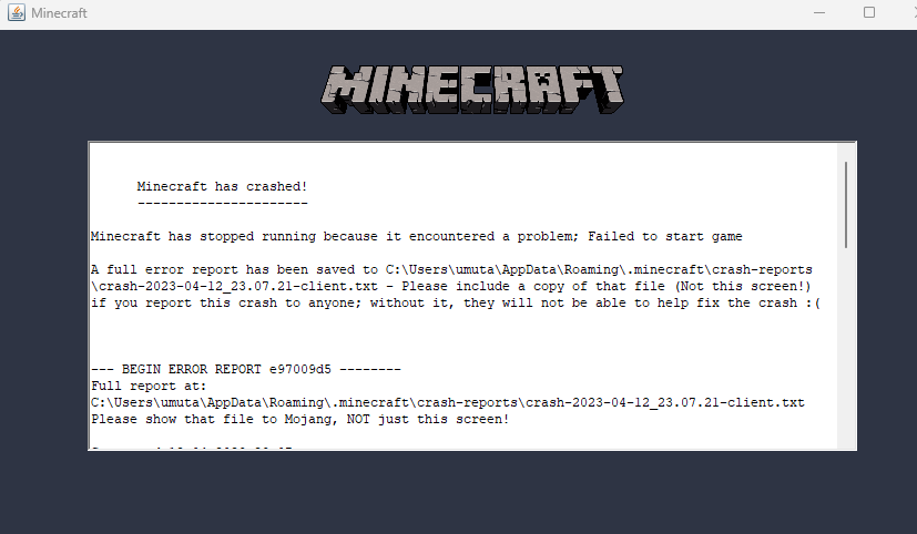 Görseldeki dosya konumunda bulunan " Crash report " metnini paylaşırmısınız ?