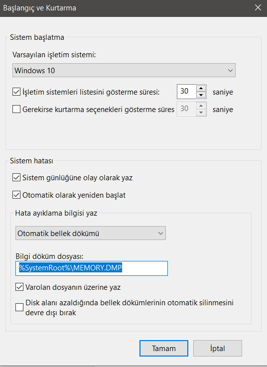 Mavi ekran hatası veriyor kendi kendine yeniden başlatıyor ama minidump dosyalarını bir türlü bulamıyorum. Ayarlarda gösterdiği yeri çalıştırdan aratıyorum ama bulunamıyor diyor.