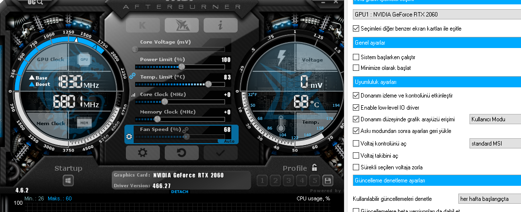 Çok hocam, çok daha düşük olması lazım ben 50 derece ile mining yapıyorum. Dediğim ayaları MSI Afterburner ile yapabilir misiniz?
