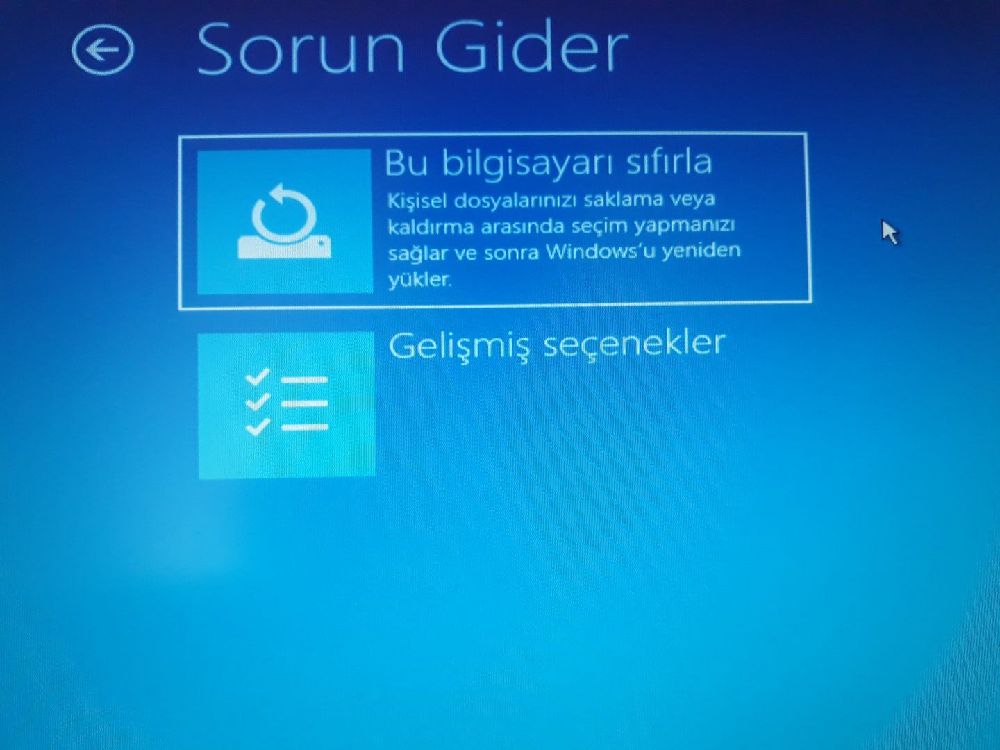 Şimdi buradan bilgisayarı sıfırla yapıyorum değil mi?