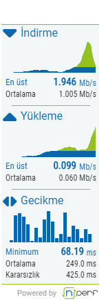 Değerlerin normal gözüküyor ancak modeminden kaynaklı sorun olabilir. Download yaparken hatalar bulmuş, evde LAN'a bağlı cihaz kullanıyor musun? Yoksa sadece WiFi mi kullanıyorsunuz?