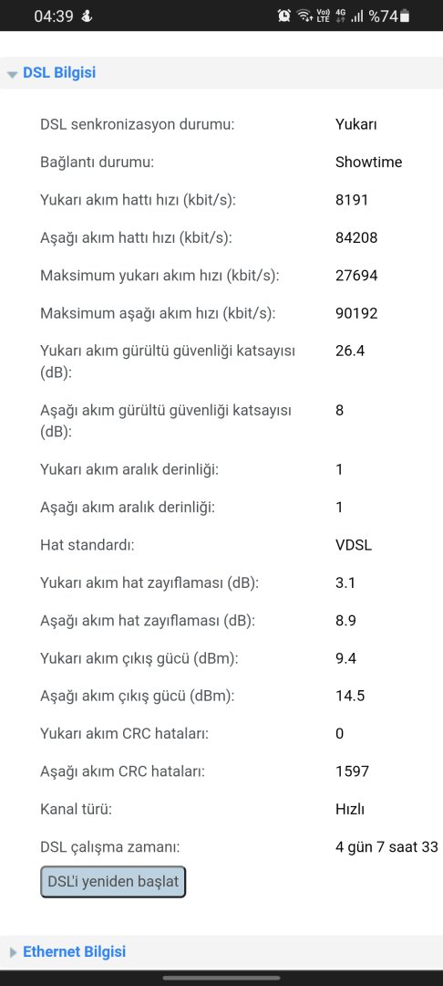 Modem arayüzünden hat değerleriniz nasıl, ne kadar hız alabilirim gibi kendinizce yorumlar yapmanızı sağlayabilirsiniz.