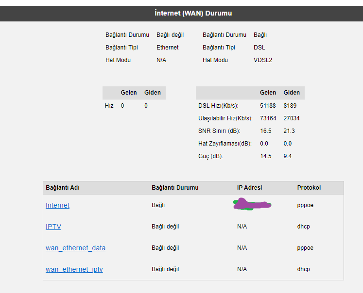 Bağlanan cihazlardan biri statik ıp kullanıyor olabilir. Yine başta belirttiğim gibi modeme farklı bir ip adresi verin ve bağlanan cihazların (mümkünse teker teker deneyerek ) havuzda ıp atanıp atanmadıgına bakın.
