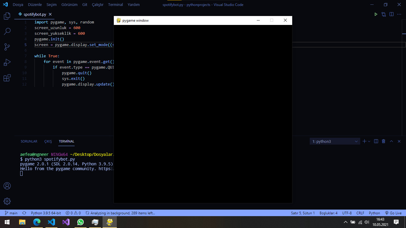 Python ile bir program yazma ödevi aldım, bu yüzden oyun yazacağım. Fakat "module 'pygame' has no 'init' member pylint(no-member)" hatasını alıyorum, yardımcı olursanız sevinirim.