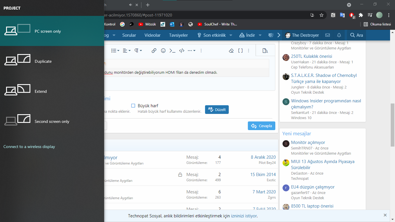 Windows+p ye basıp görüntü modunu değiştirmeyi dene.