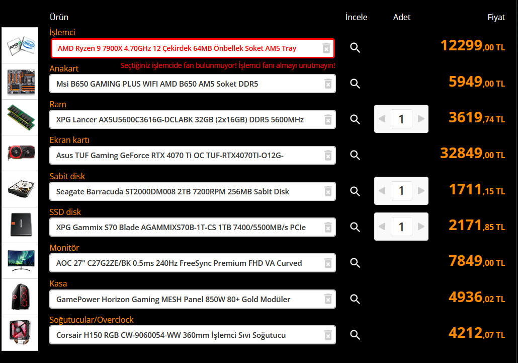 72000 TL. SSD'yi 2 tb yapabilirsiniz: