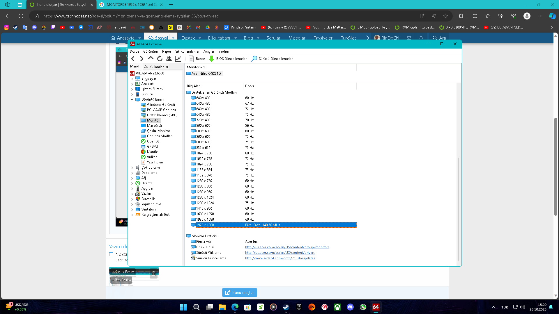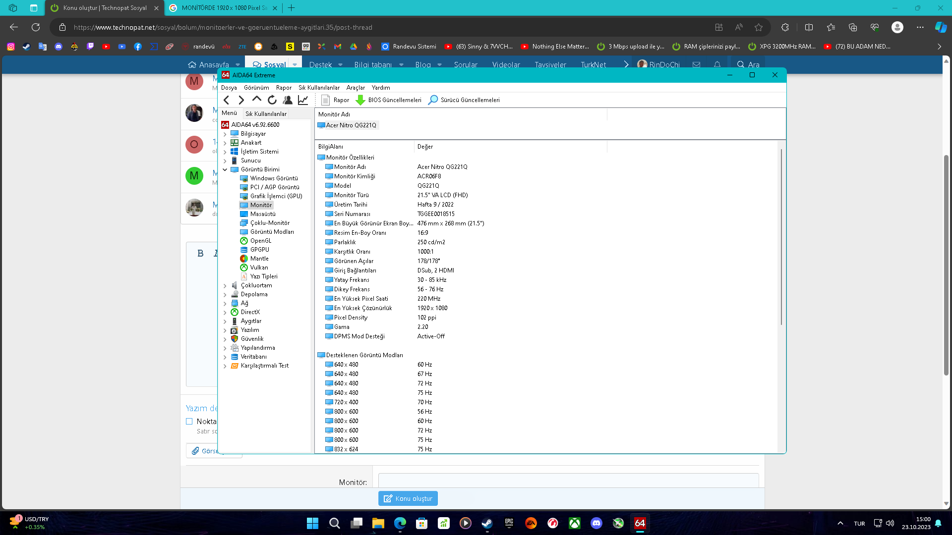 Monitör kaç Hz?