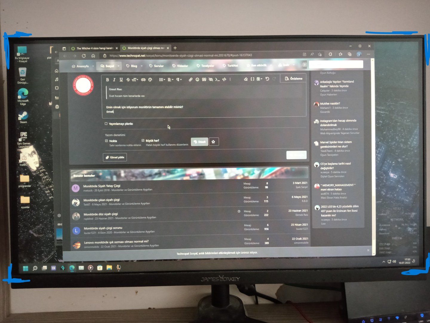 Arkadaşım LG27GP83 model monitörü satın aldı. Dikkatlice bakınca siyah bir çizgi geçiyor. Yandan bakınca daha net bir şekilde siyah çizgi gözüküyor. Normal mi yoksa ürün mü sıkıntılı? Ona göre ürünü geri yollayacak.