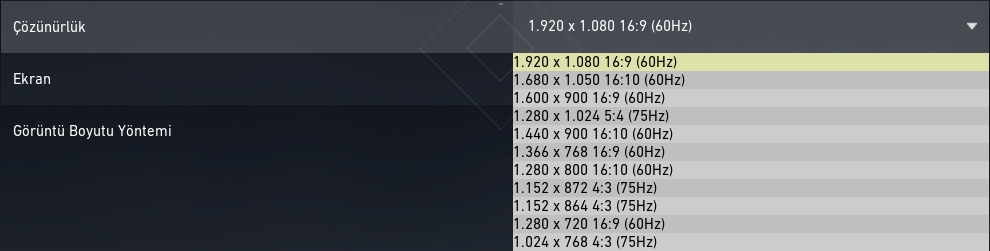 Monitöre basıp buradan yaptığınız Hz (Hertz) seçin.