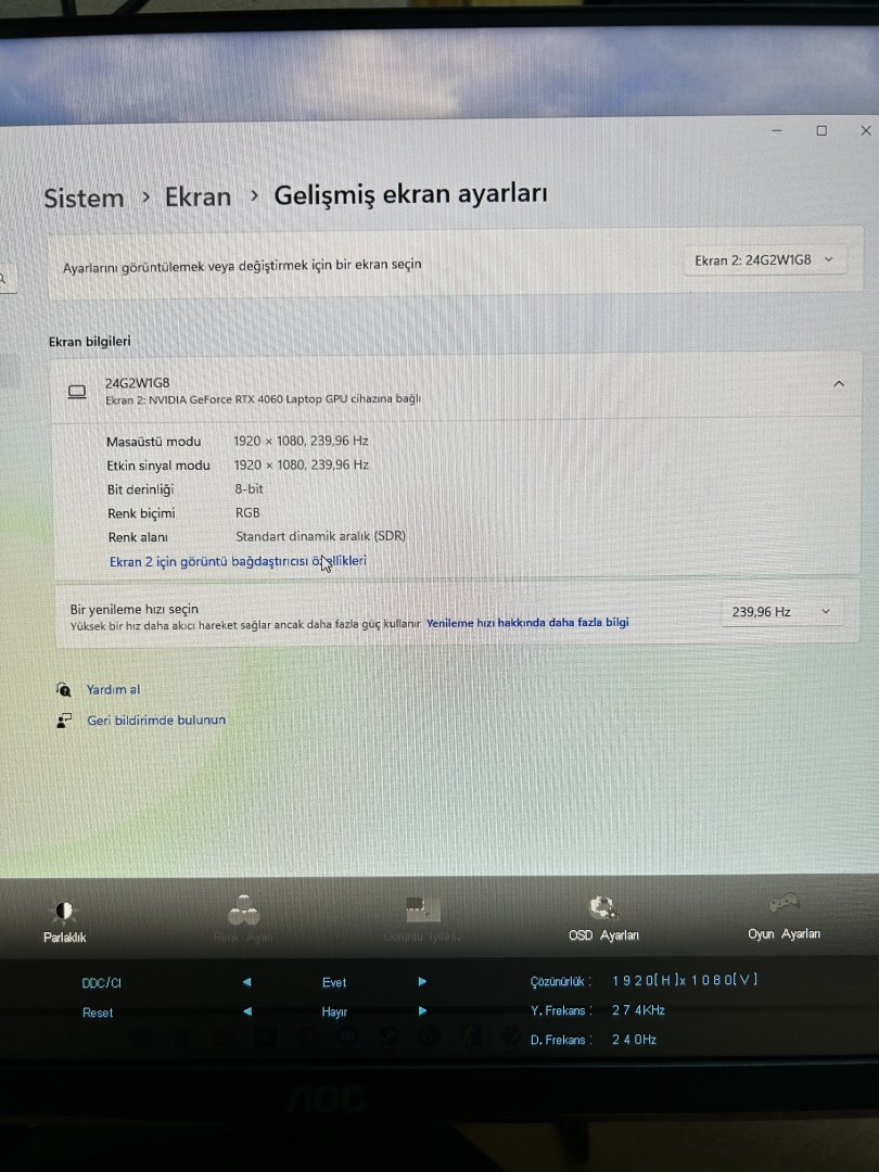 Peki bu aldığım 240hz değil mi. Görsel ekledim. HDMI ile 240 alamıyorsam bu aldığım nedir bilgilendirir misiniz