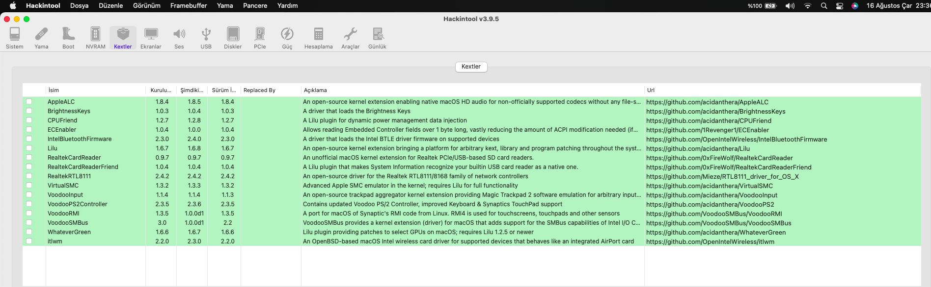 Bunun yanında Wi-Fi için airportitlwm kexti Sequoia da desteklenmediğinden itlim ve heliport uygulaması kullanılacaktır. EFI içinde de mevcuttur. EFI'yi biraz düzenledikten sonra atacağım. Beklemede kalın. Yalnız size bir uyarı Ventura ve daha üstü sürümleri kurmak istiyorsanız biraz işler karışıyor. Merak etmeyin bir rehber yayınlayacağım. Ona göre takip ederseniz sorun çıkacağını sanmıyorum. İyi sosyaller.
