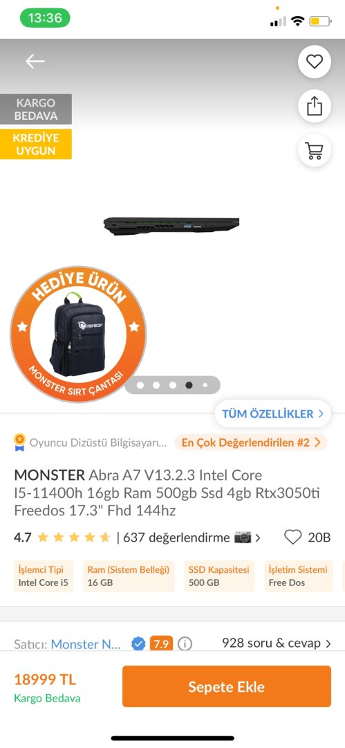 Monster Abra A7 laptop 18.999 TL'ye alınır mı?