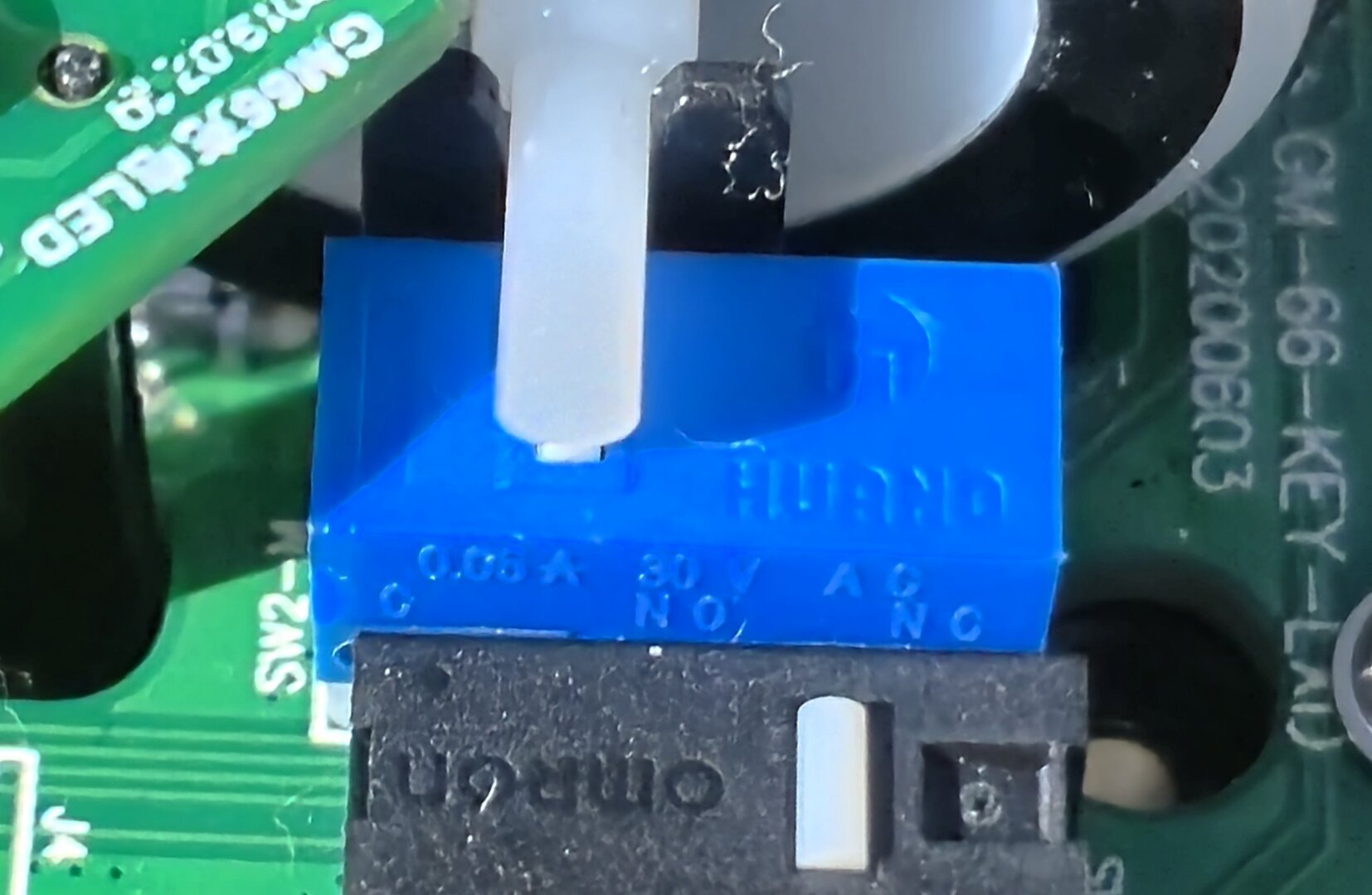 Sırada switchler var. OMRON D2FC-F-7N(20M) model switch kullanıyor.