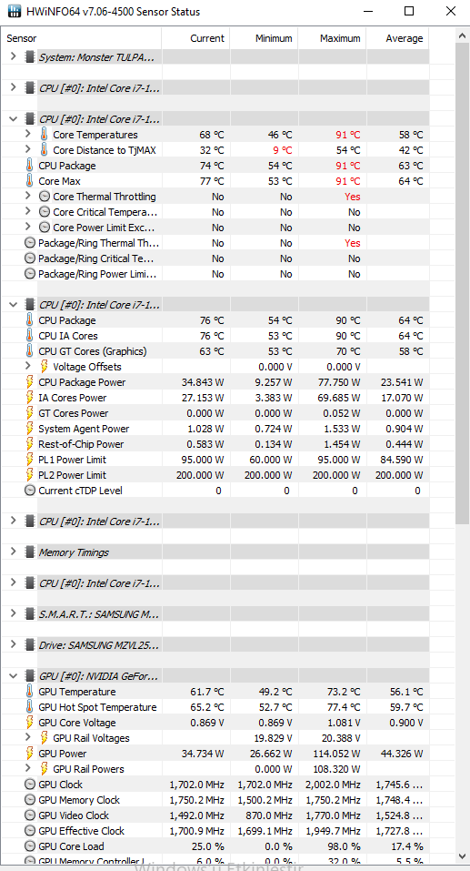 Aynı zamanda sıcaklıklarınız 85 geçmemiştir diye düşünüyorum, oyunda yükleme ekranlarında işlemciye yük biner ve anlık 80W tüketebilir o anda 91/93 olmuş olabilir. Afterburner ile oyunda sıcaklıkları kontrol edin derim.