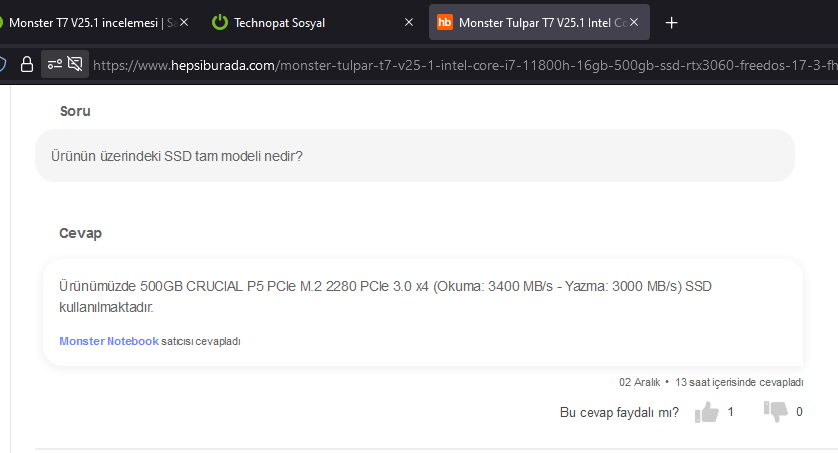 Bende geçen gün aldım hepsiburadadan. P2 SSD göndermişler.. Arayıp soracağım şimdi.