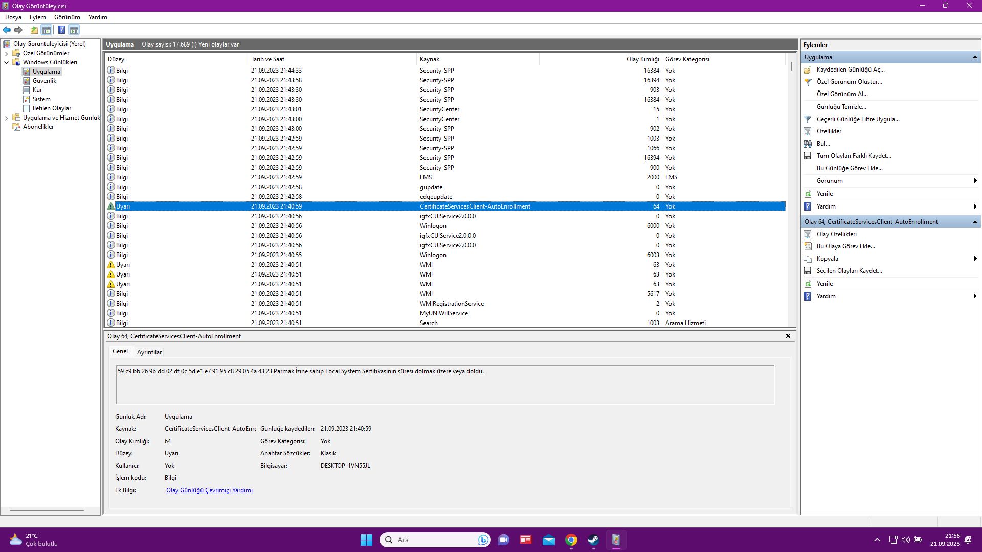 Hocam o kadar çok işlem olmuş ki bu süreçte 28 bin küsür olay var normal midir bu? Birçok bilginin yanında uyarı ve hata adı altında başlıklar var bir kısmını buraya yazdım.