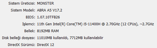 Ben güncel bios sürümünü sorduğumda da bana güncel sürümdesiniz dediler.