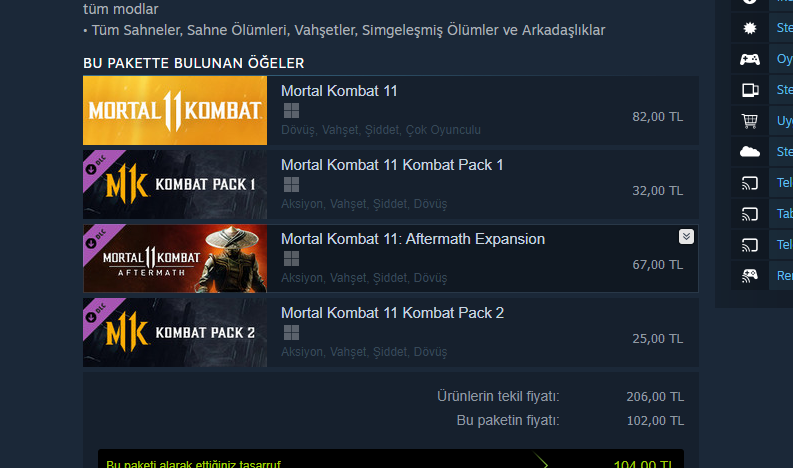 Bildiğiniz gibi Steam yaz indirimleri artık çok yaklaştı. Bende bu indirimlerden MK11'i almak istiyorum DLC'leriyle beraber ama ufak çaplı bir araştırma yaptım. Sanırım bazı DLC'ler aynı yani mesela kombat 1 adlı DLC'de shang tsung, nightwolf, Terminator t-800, sindel, joker ve spawn gibi karakterler var ve bunlar ayrı ayrı da satılıyorlar. Asıl sormak istediğim ben Mortal Kombat 11 Ultimate'i alırsam tüm DLC'leri almış mı oluyorum yoksa ekstra birkaç tane daha almam gerekir mi? Gerekiyorsa hangilerini almalıyım?