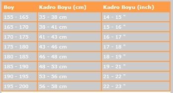 MTB'de 46 cm kullanan biri yol bisikletinde 57 cm kullanmak durumunda kalabilir. Kadro geometrisine göre de uygun kadro boyu değişkenlik gösterebiliyor.