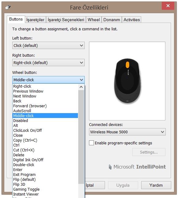 Öncelikle mouse orta tuşu basmıyor diye tuşa fazla yüklenmeyin, (ki genellikle orta tuşlar ağır olur ve basmadığı düşünülür) çünkü ilk bakacağınız şey mouse'unuzun varsa güncel driver'ını indirmek veya denetim masasından ayarlarını kontrol etmek.