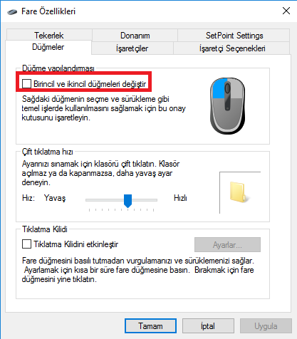 Fare özelliklerindeki ayar ne alemde? Tik varsa kaldirip tekrar deneyin. Format attiginiz icin bu ayarin standart olarak etkin olmamasi gerekiyor. Yine de kontrol etmekte fayda var.