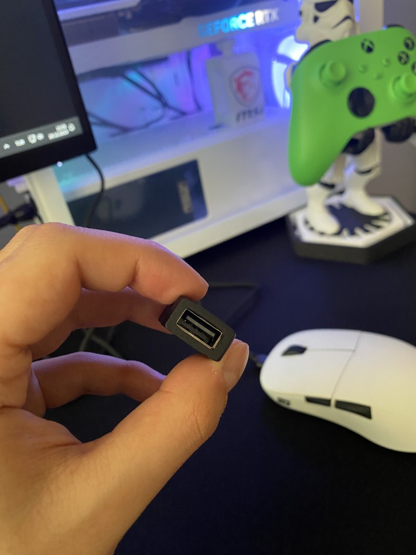 O elindeki şey dongle uzatıcı. Dongleyi büyük tarafa şarj kablosunu diğer tarafa takıyorsun şarj kablosunun USB'sini de PC'ye takıp dongle uzatıyorsun