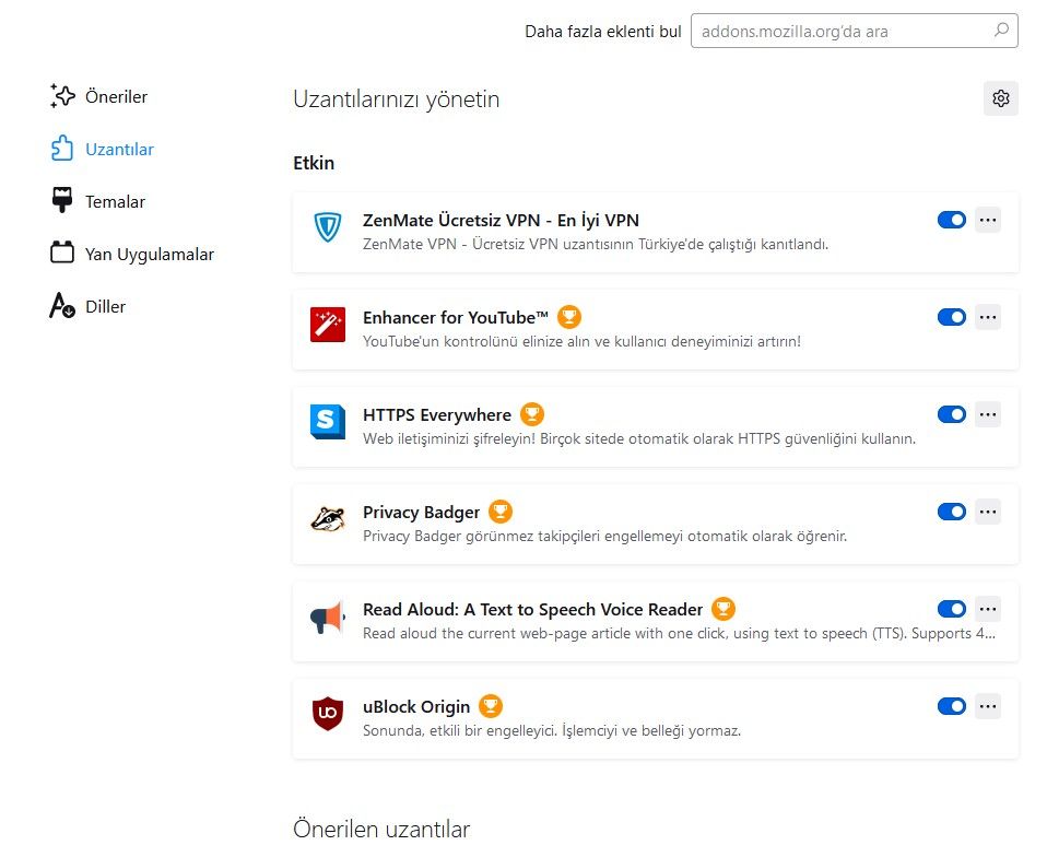 Yüklediğin ikinci ekran görüntüsünü görmemişim. Orada olan Privacy Badger'da gereksiz. Bu uzantı bilinen takipçileri engeller sadece. Yani popüler olanları. Derin ve gelişmiş engelleme yapamaz.