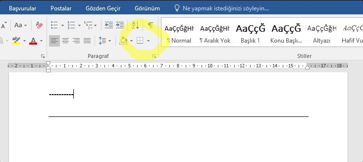 Günaydın, merhaba; resimde gördüğünüz gibi orta çizgileri yan yana çizip Enter'a basınca aşağıdaki gibi uzun satır çizgisi veriyor ama bunu daha sonra kaldıramıyorum. Bir yöntemi var mı? Sadece CTRL+Z işe yarıyor bu da belgeyi kapatıp açınca işe yaramıyor tabii.