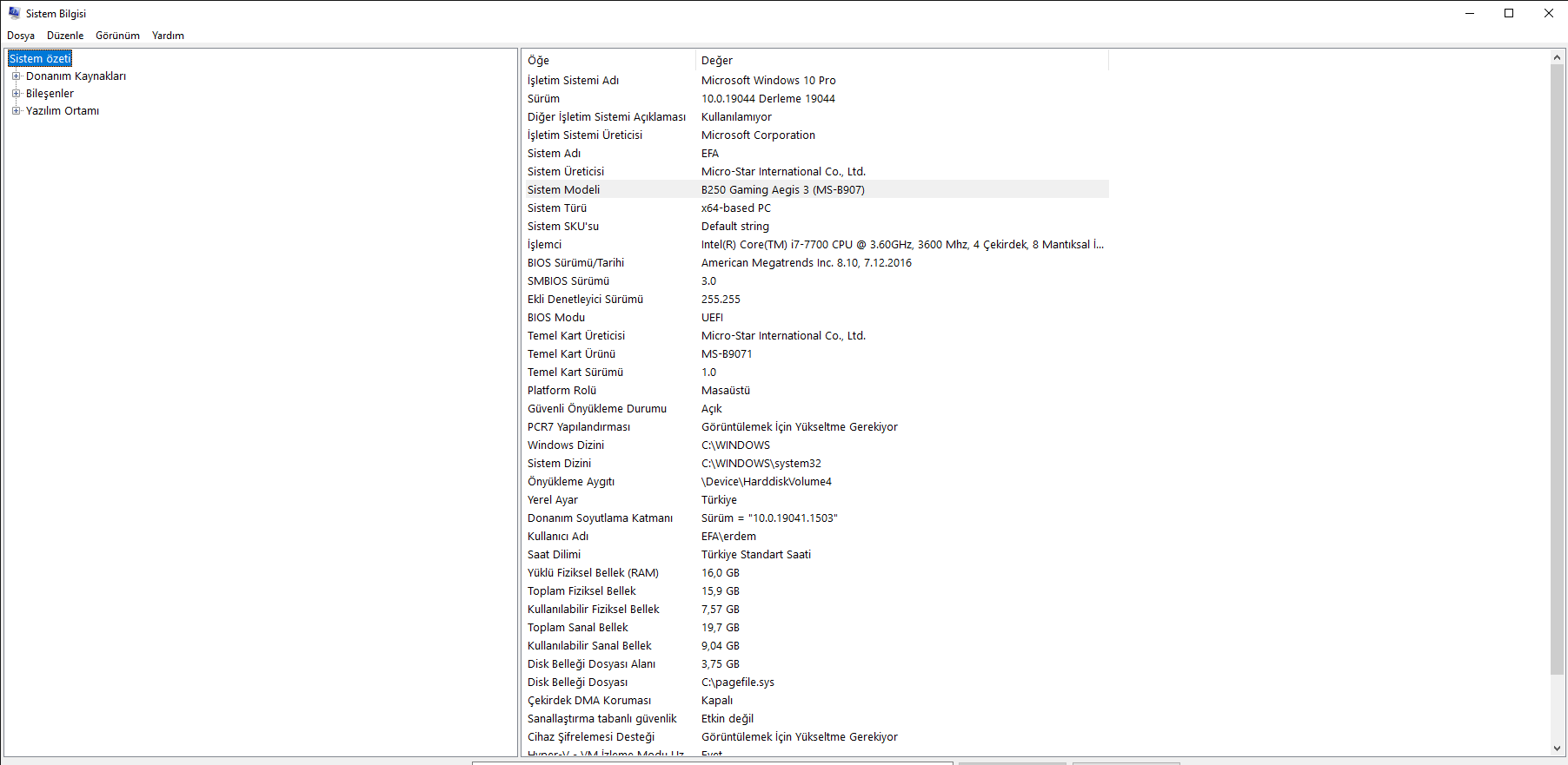 Ek olarak SSD'den hiç anlamam. CMD ekran fotoğrafında en altta yazan bilgisayardaki SSD marka modelim. O ayarda anakartın kabul edebileceği 500 GB SSD önerisi alırım. MSI sitesinde benim bilgisayarın SSD özelliği için şu yazıyor "