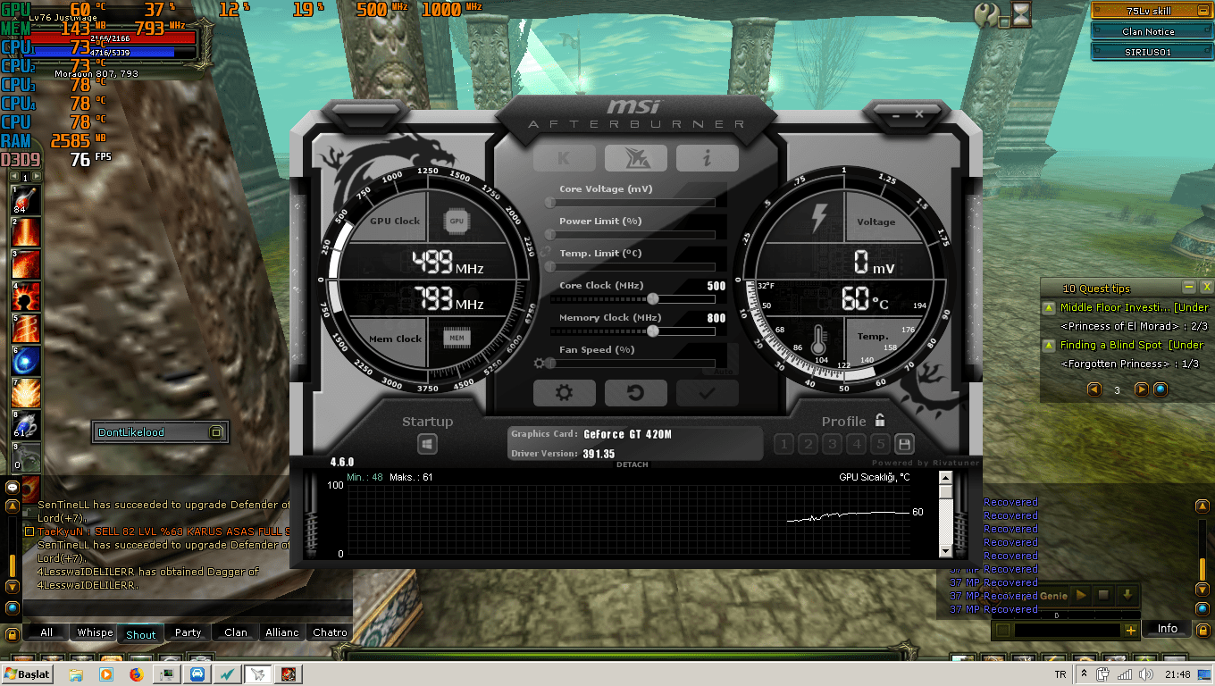 Silinen üye dedi: Selam arkadaşlar. Ekran alıntısında normaldeki ekran kartı ayarlari. Core clock ya da memory clock yükseltilir mi? Ayarlari nasil olmali.? Teşekkürler. Eki Görüntüle 386774 Genişletmek için tıkla... Knight Online moradonda pazar alanında fpsleri merak ettim.