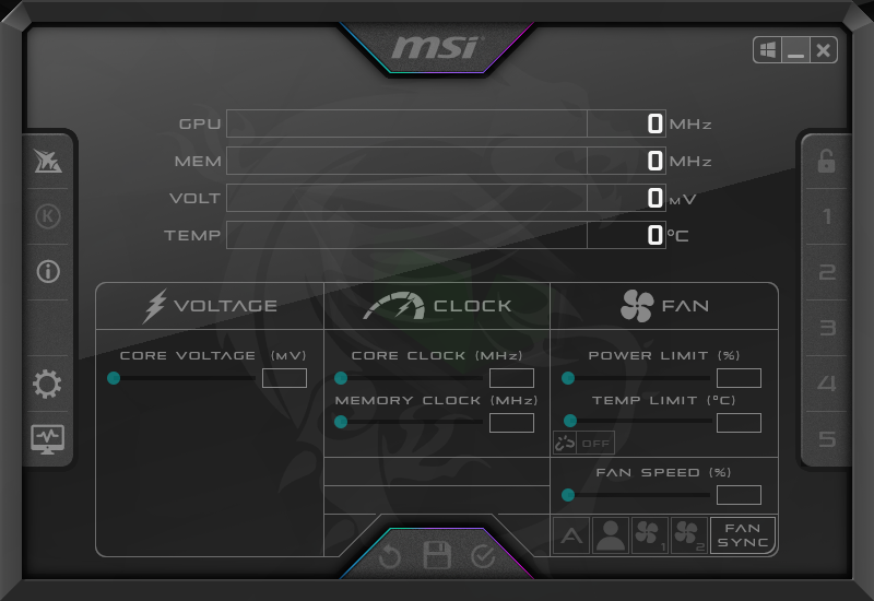 MSI Afterburner'da hiçbir şey gözükmüyor.