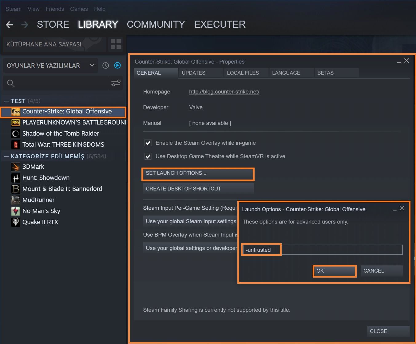 Dediğini yaprım çalıştı ama bu sefer de oyuna girince trusted mod not failed diyor eğer öyle oynarsam, VAC ban atar nasıl tekrar eski haline getiririm bunu ya.