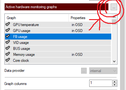 Sensörün doğru çalıştığını varsayarsak. Gösterdiğim 3 noktaya tıklayıp GPU.dll ve CPU.dllnin tiklerini aktif edip. Afterburner'i yeniden başlatır mısınız? Bu yaptığınız işlem sensörleri algılayan yazılım DLL'sini değiştirmektir. Ardından bakalım çalışıyor mu?