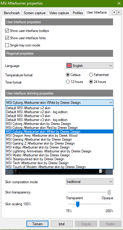 MSI Afterburner tema değişmiyor