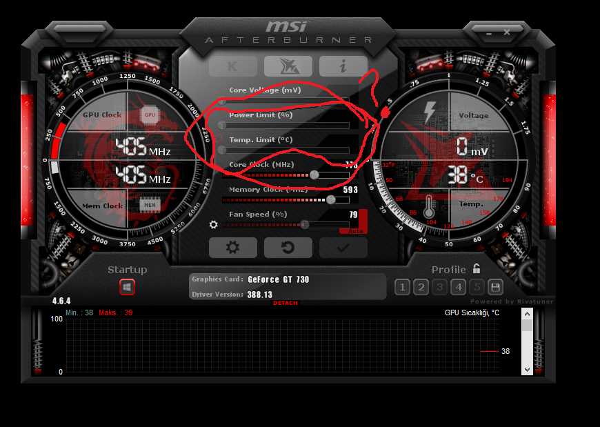 Öncelikle yaptığınız OC nin değerlerini kaybetmeyin. Ardından OC yi sıfırlayın ve afterburneri kapatın. Daha sonra C:\Program Files (x86)\MSI Afterburner klasörüne gidip " Profiles " adlı klasörü silin. Programı açın. OC değerlerini elle tekrar girdikten sonra Profil olarak kayıt edin. Şimdi değerlerinizi hatırlıcaktır.