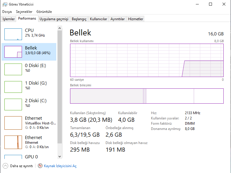Başlıkta Ram yok yazmışım Sorun şu ki 16 Gb Ram in 8 ini donanıma ayırmış olması.