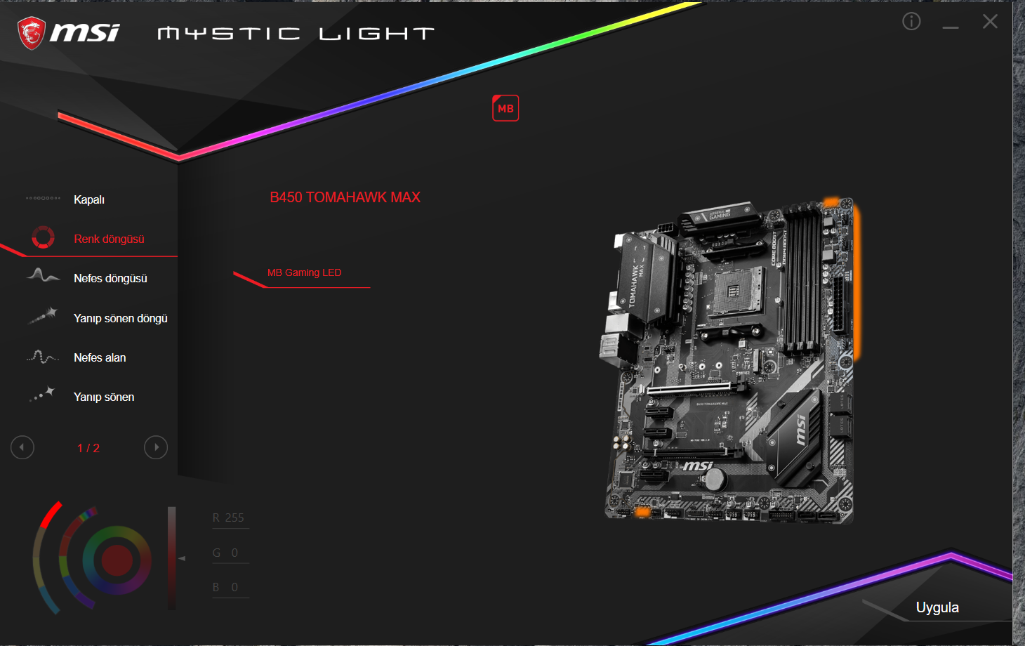 MSI B450 Tomahawk Max modeli anakartım var sistemim yeni 1 ay önce satın aldım Dragon Center üzerinden MSI Mystic Light özelligini kullanabiliyordum nefes alma modunda bugün güncelleme gelmiş onu yaptım Dragon centera ver Mystic Light yazan bölüm kaldırılmış. MSI Center programı üzerinden mystick lighti kurup aç a basıyorum ve features bölümüne eklenmiyor sorun ne olabilir yazılımsal oldugunu düşünüyorum şu anda anakartım sabit kırmızı renkde kaldı.
