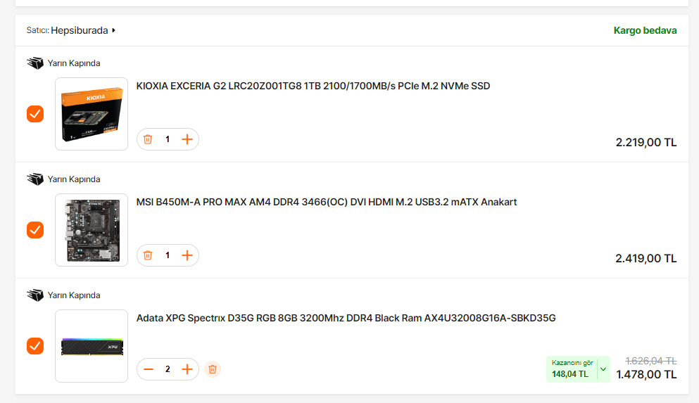 Merhaba, bu anakartı almayı düşünüyorum. Şu an fiyatı 2400 küsur lira, 10000 lira bütçem var. Anakart RAM işlemci ve SSD alacağım. İşlemci için de 5600 düşünüyorum. Sizce bu kombinasyon iyi mi? Şu işlemciyle şu anakartı alsan çok daha iyi olur dediğiniz bir tavsiyeniz var mı? Şu an benim almayı düşündüğüm set aşağıda.