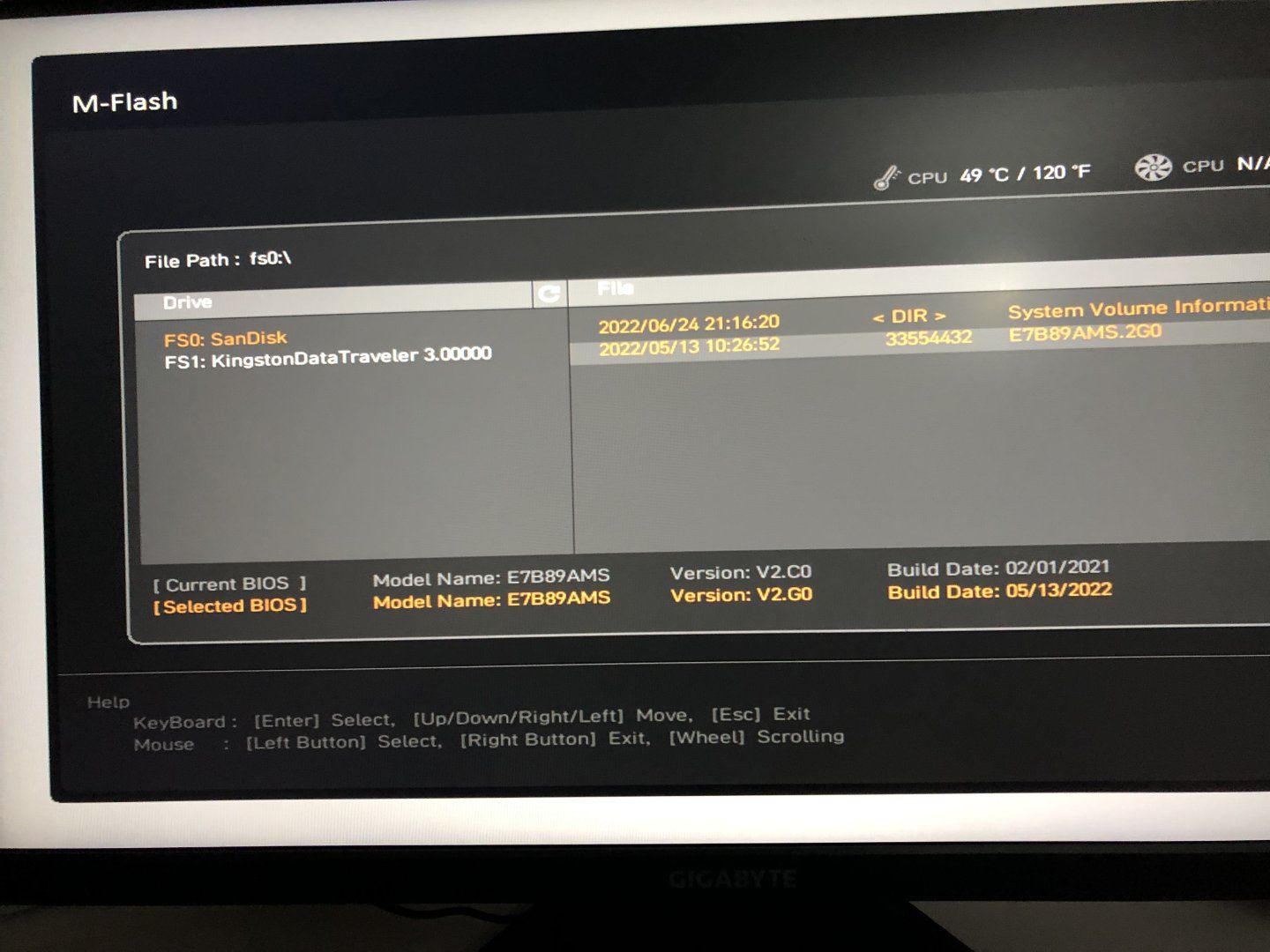 MSI B450M Mortar Max anakartımın BIOS'unu E7B89 ams.2C0'dan E7B89 ams.2G'ye güncelledim, güncelleme için henüz masaütündeyken flah diskime attığım cap uzantılı dosyası , anakartımın arkasında bulunan flash BIOS portuna öylece taktım. Sonra bilgisayarımı yeniden başlattım ve BIOS ekranına geldim oradan da M-Flash yazan yere tıkladım, buraya kadar her şey iyi gidiyordu. Sonrasında bilgisayarım kapandı ve bir daha açıldı. Sonra M-Flash ekranına attı. Buradan da ben diskimde bulunan BIOS sürümüne tıkladım güncelleme yapmaya başladı.(aşağıda görüntüleri mevcut) bittikten sonra yeniden başladı fakat ekran gelmiyordu her şey çalışır durum da fakat ekran yok ve anakartımın üstünde bulunan VGA ışığı yanıyordu. Bir iki kere yeniden başlattım fakat sorun aynı idi.