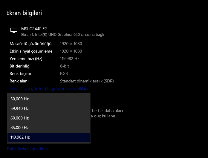 Merhaba bugün gaming.gen.tr'den MSI G244F E2 monitörünü aldım Hz ayarlarına girdim 120 Hz yazıyor. Monitör 180 Hz. Yardımcı olursanız sevinirim.