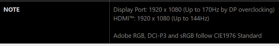 MSI'ın resmi sitesinde HDMI'la 144 Hz üzeri görüntü alamayacağımızı belirtiyor.