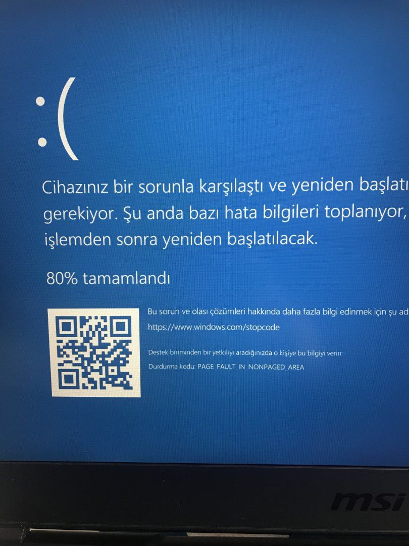 MSI GL65 SYSTEM_THREAD_EXCEPTION_NOT_HANDLED hatası