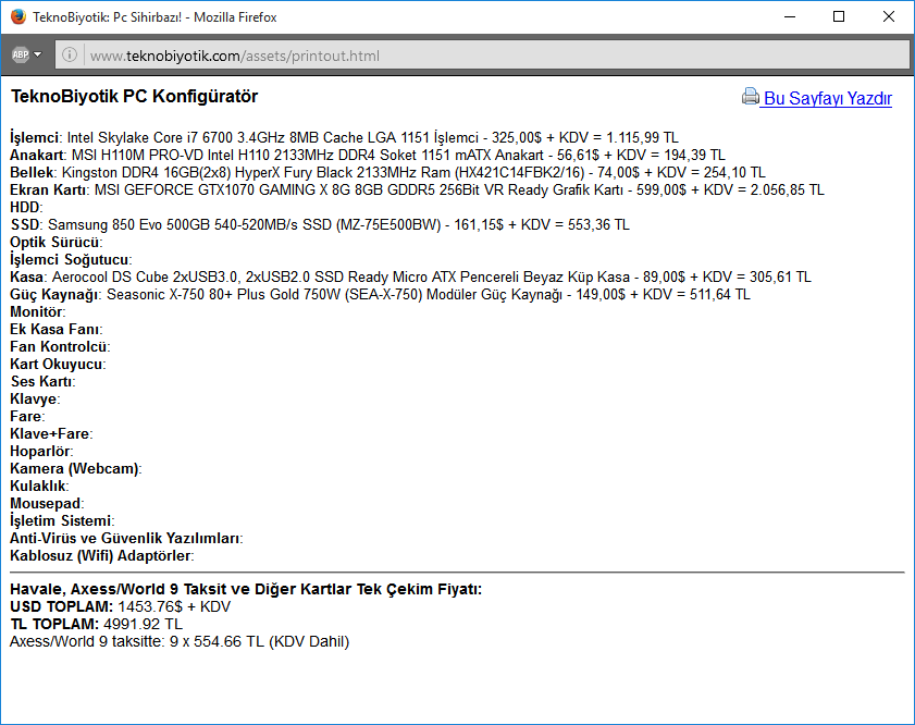 1) Gtx1070 (mümkünse Msi Gtx1070 gaming X 8G) dahil DDR4 Sistem önerirseniz sevinirim. Sistem oyun bilgisayarı olacak ve monitör dahil değil. Kasa ve PSU dahil minimum 4000 maksimum 5000 TL'lik sistem önerirseniz memnun olurum.