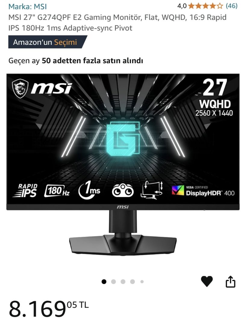 Aşağıdaki monitörlerin özellikleri aynı ama aralarında fiyat olarak bayağı bir fark var. Bu fark nereden geliyor sizce ve bana hangi monitörü önerirsiniz? Ekran kartım RTX 4070 işlemcim i5 13400F 2K ve 27 inç monitör istiyorum. MSI MAG 274QRFW beyaz olan 180Hz'lik model sizce iyi mi? Bütçemi aşağı yazdım. Çok az daha üstüne çıkabilirim.