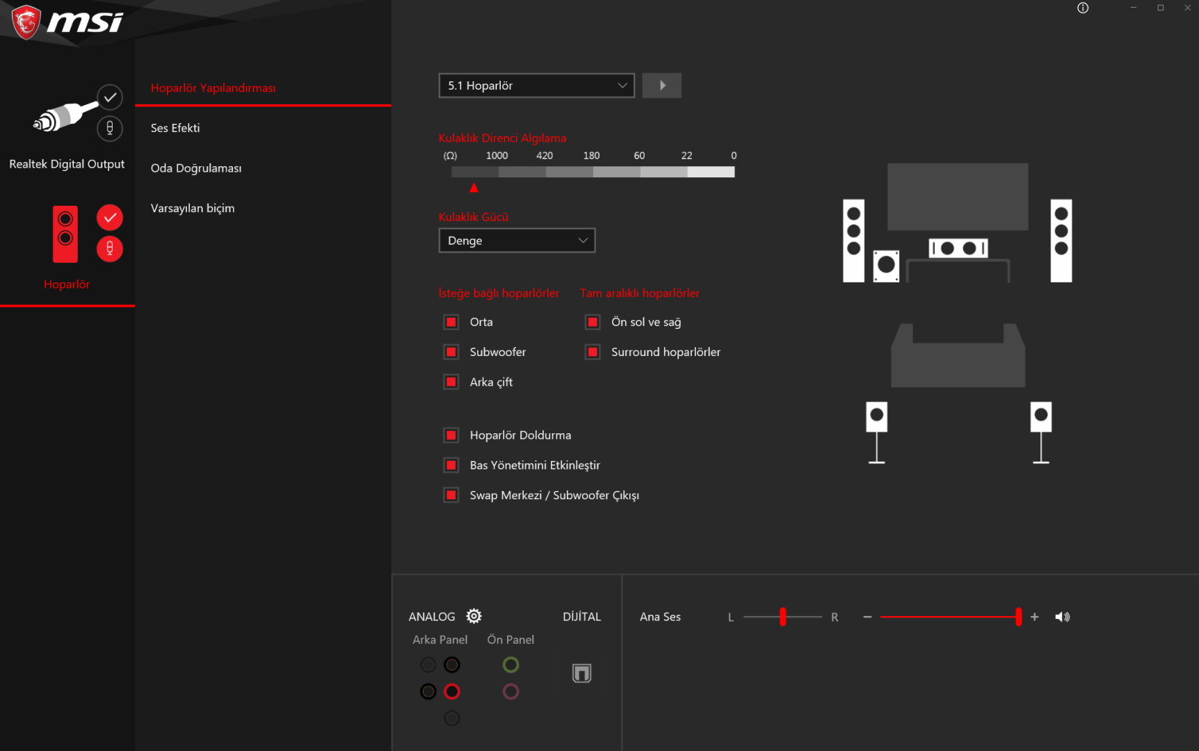 Arkadaşlar aslında dükkanımız için aldığım bu Logitech X-530 ses sistemini dükkanımızda istediğim verimi alamayınca eve götürdüm, evde de televizyona bağlamak istedim ancak sanırım televizyonumuzun ses çıkışı bozuk olduğu için hiç ses çıkışı alamadım. Kutuya koyup kenara kaldırdım. Şimdi ise yeni kurduğum masaüstü bilgisayarımda kullanmaya karar verdim. Bilgisayarıma bağlantı şemasına uygun biçimde bağladım, ses kalitesi genel olarak çok güzel ancak subwoofer 'da gereksiz bir uğultu sesi var, bu sesi nasıl kesebilirim? Subwoofer 'ı iptal etmek istemiyorum bakın, uğultuyu kesmek istiyorum. Birde arada sırada hoparlörlerden pıt diye ses çıkıyor, neden olabilir? Bu sistem için Realtek Control Panel ayarlarım nasıl olmalı? Şu anda bu şekilde: